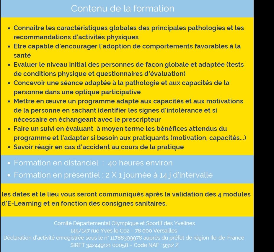 Le CDOS 78 reprend ses formation des éducateurs pour les activités Sport-santé / Bien- être dans le cadre du dispositif Prescri’Forme.