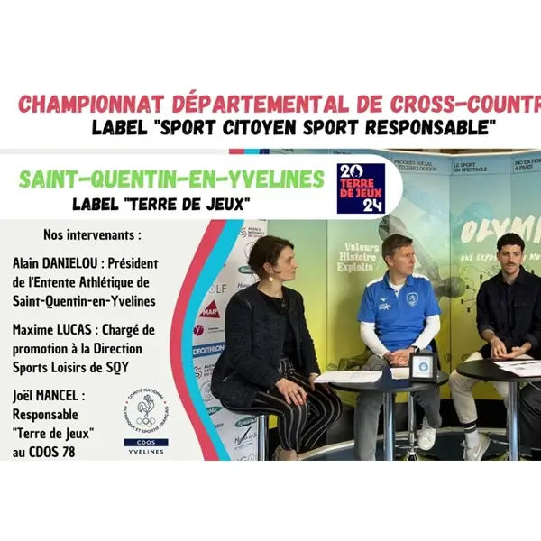 Replay & Podcasts Studio du 07/04/2022 : Remise du label sport citoyen-sport responsable à l’EASQY pour le championnat départemental de Cross-country et SQY Terre de Jeux 2024 7 avril 2022