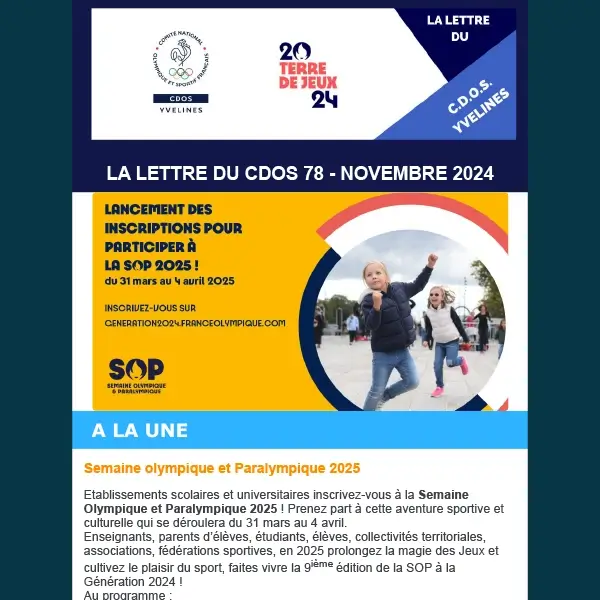Le Comité Départemental Olympique et Sportif des Yvelines (CDOS 78) accompagne les clubs, et les territoires pour promouvoir un sport accessible, durable et connecté aux enjeux de demain.
